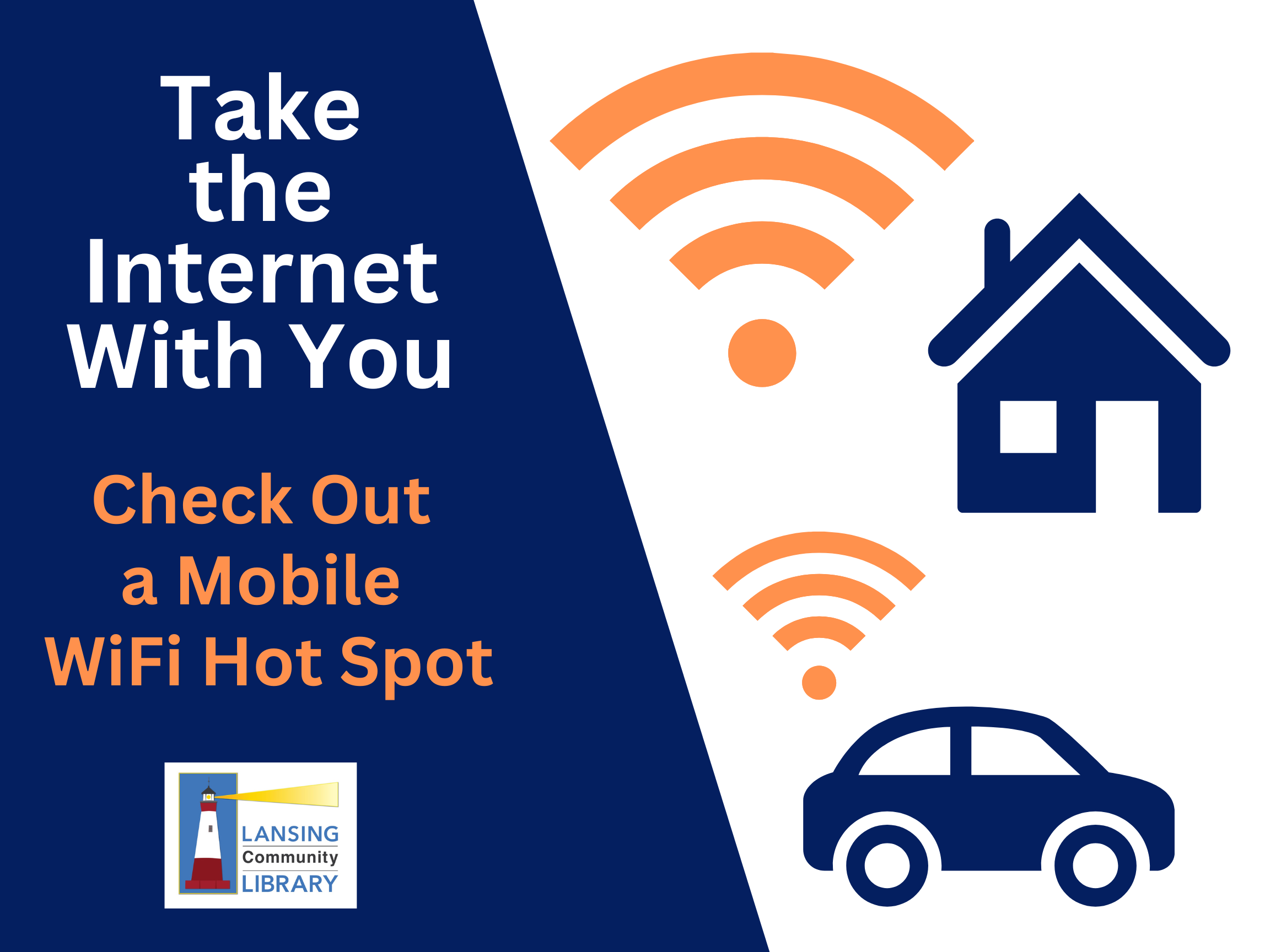 The Lansing Community Library loans mobile hotspot kits so your household can access the internet from home or on the go.