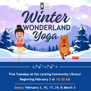 LCL Winter Wonderland Yoga Looking for a fun way to stay warm this winter? ... 03 Feb 10:30 am - 11:30 am Lansing Community Library27 Auburn Road, Lansing, NY