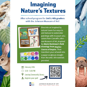 Imagining Nature’s Textures: After school program for 3rd & 4th graders with the Johnson Museum of Art!