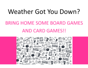 We have over 40 games to choose from – including classics such as Apples To Apples and Scrabble, and new ones like Exploding Kittens and Diary of a Wimpy Kid – Cheese Touch!