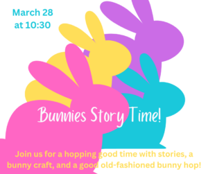 Join Ms. Shelley on Thursday, March 28th, for a hopping good time with stories, a bunny craft, and a good old-fashioned bunny hop!