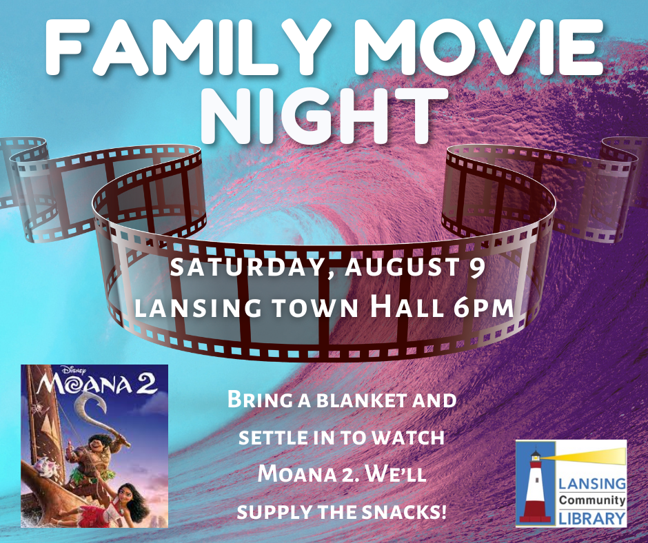 Join us on  Saturday, August 9 at Lansing Town Hall for a special Family Movie Night!
