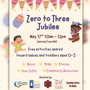 Join us at the Lansing Town Hall on Saturday, May 17th, from 10 AM – 12 PM for a special celebration of our youngest children and their families!